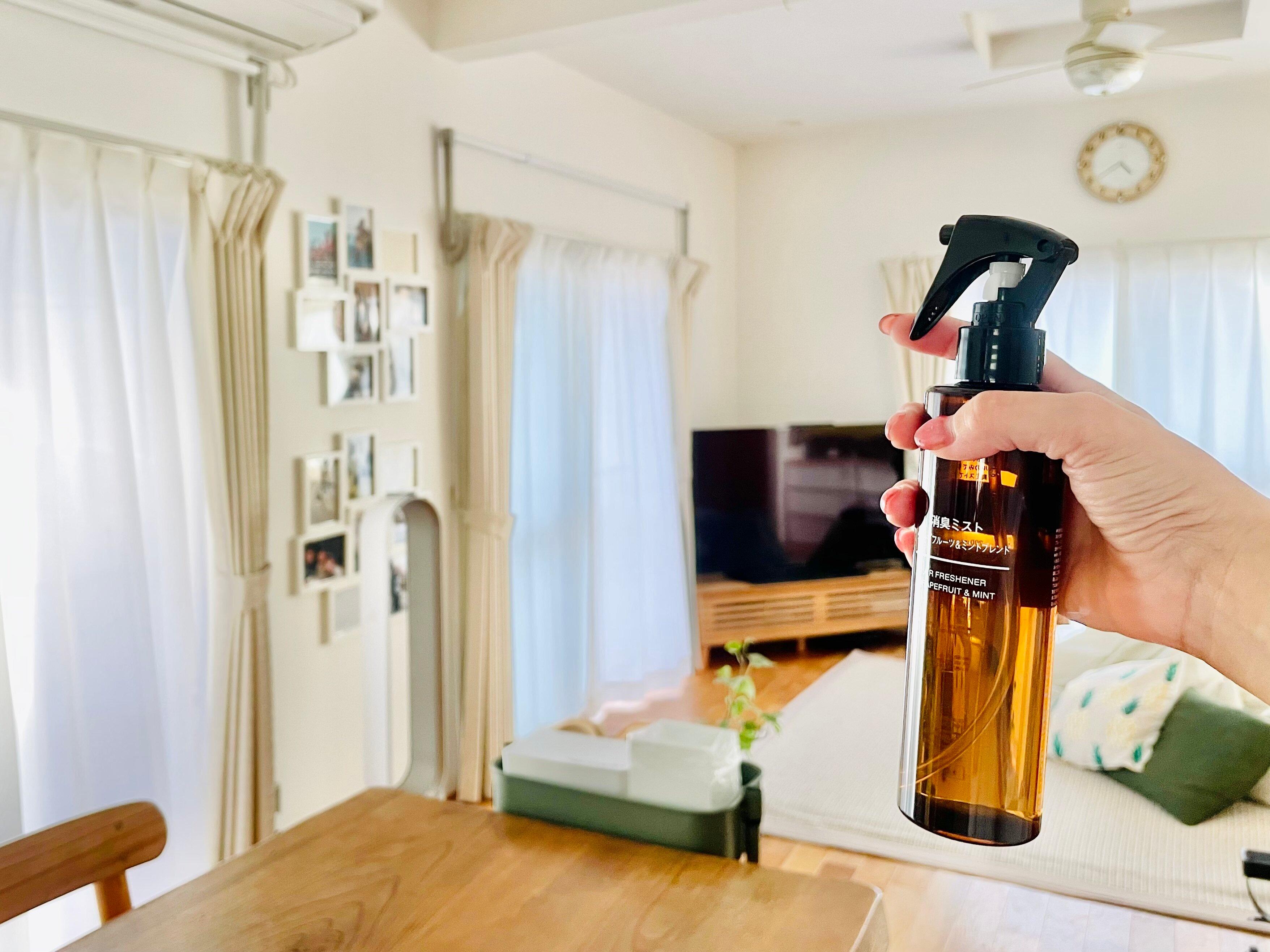 瞬時ににおいをリセットしたいときに使っているのが、「無印良品」の消臭ミスト。空間はもちろん、ソファやカーテンなどの布製品にも使えます。