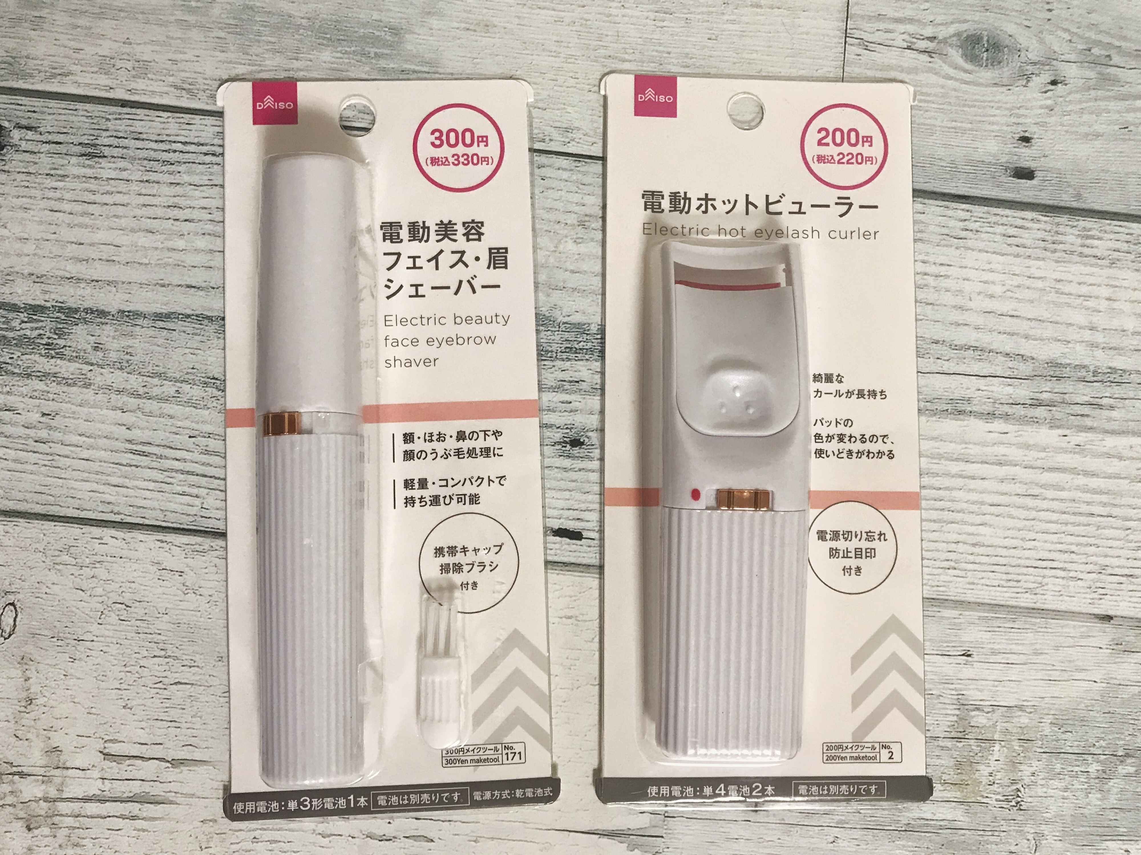 今回ご紹介するのが「電動美容フェイス・眉シェーバー」(330円)と「電動ホットビューラー」(220円)