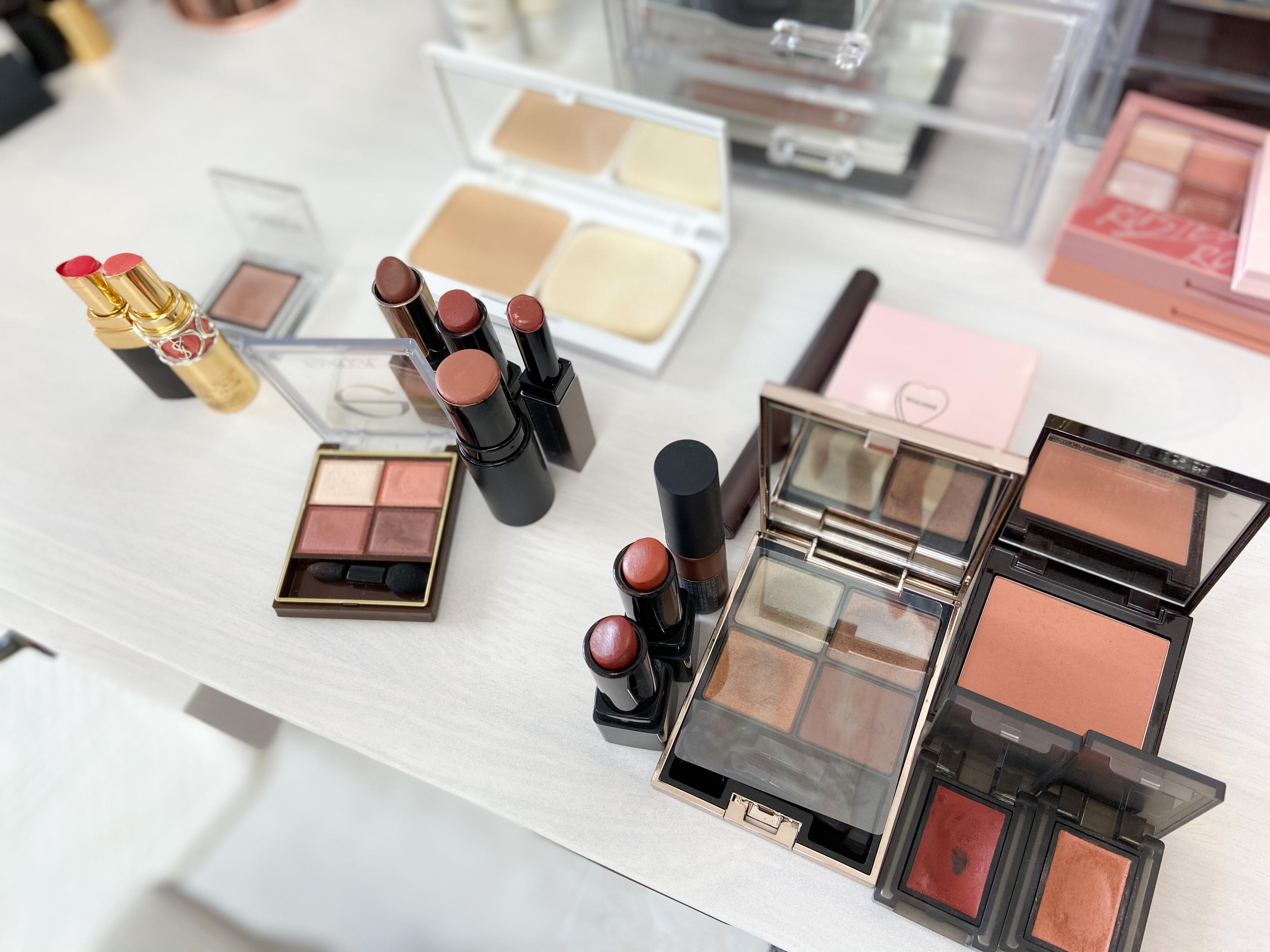 似合うカラーが分かったところで、持参したコスメがパーソナルカラーに合っているかチェックしていただきました。だいたい正解でしたが、中には合わないコスメもちらほら。