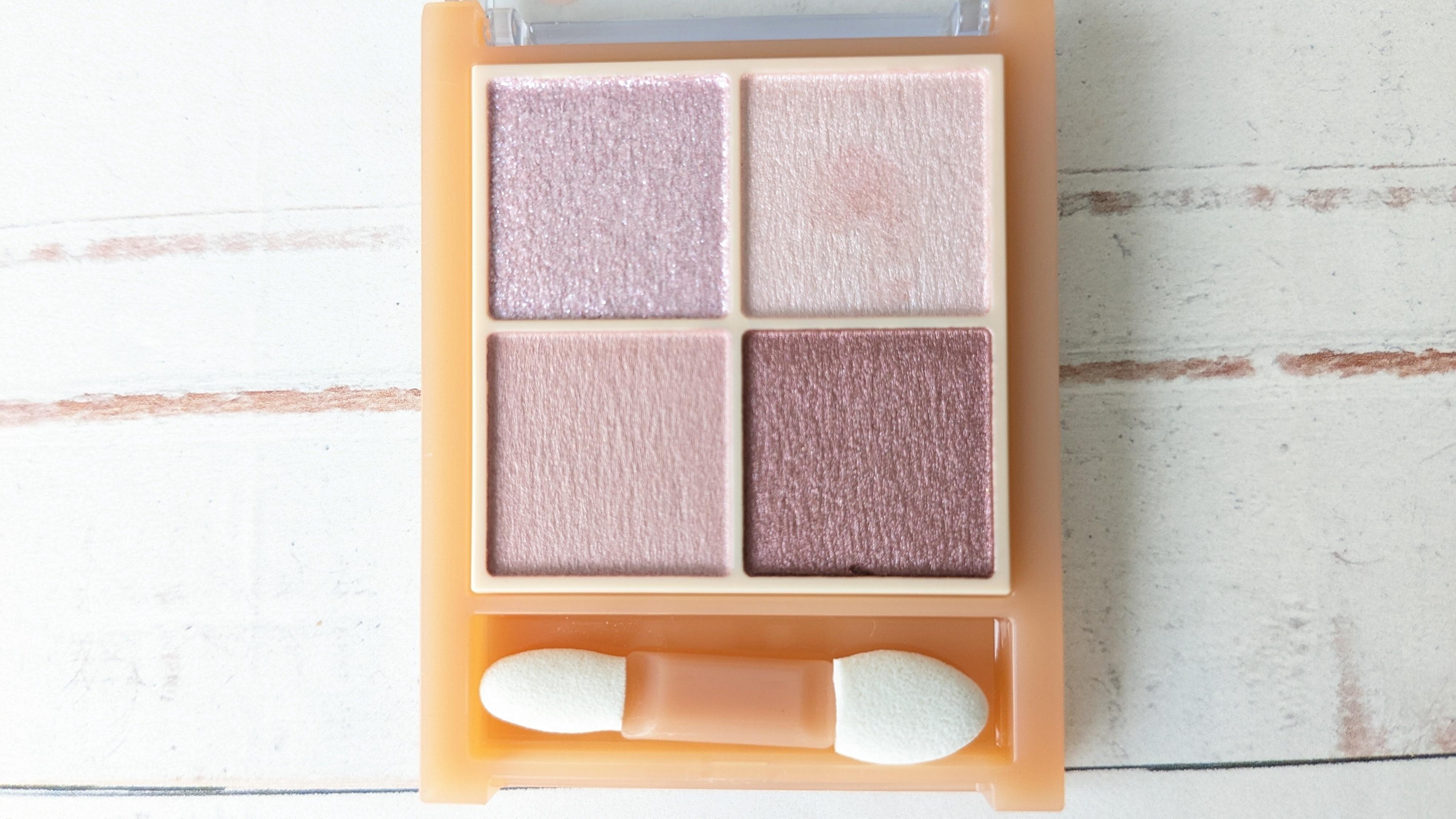 左のハイライトは淡いベージュよりの薄ピンクなので肌になじみやすいです。涙袋や目頭にさっと乗せると肌が生き生きとした感じに見えます。