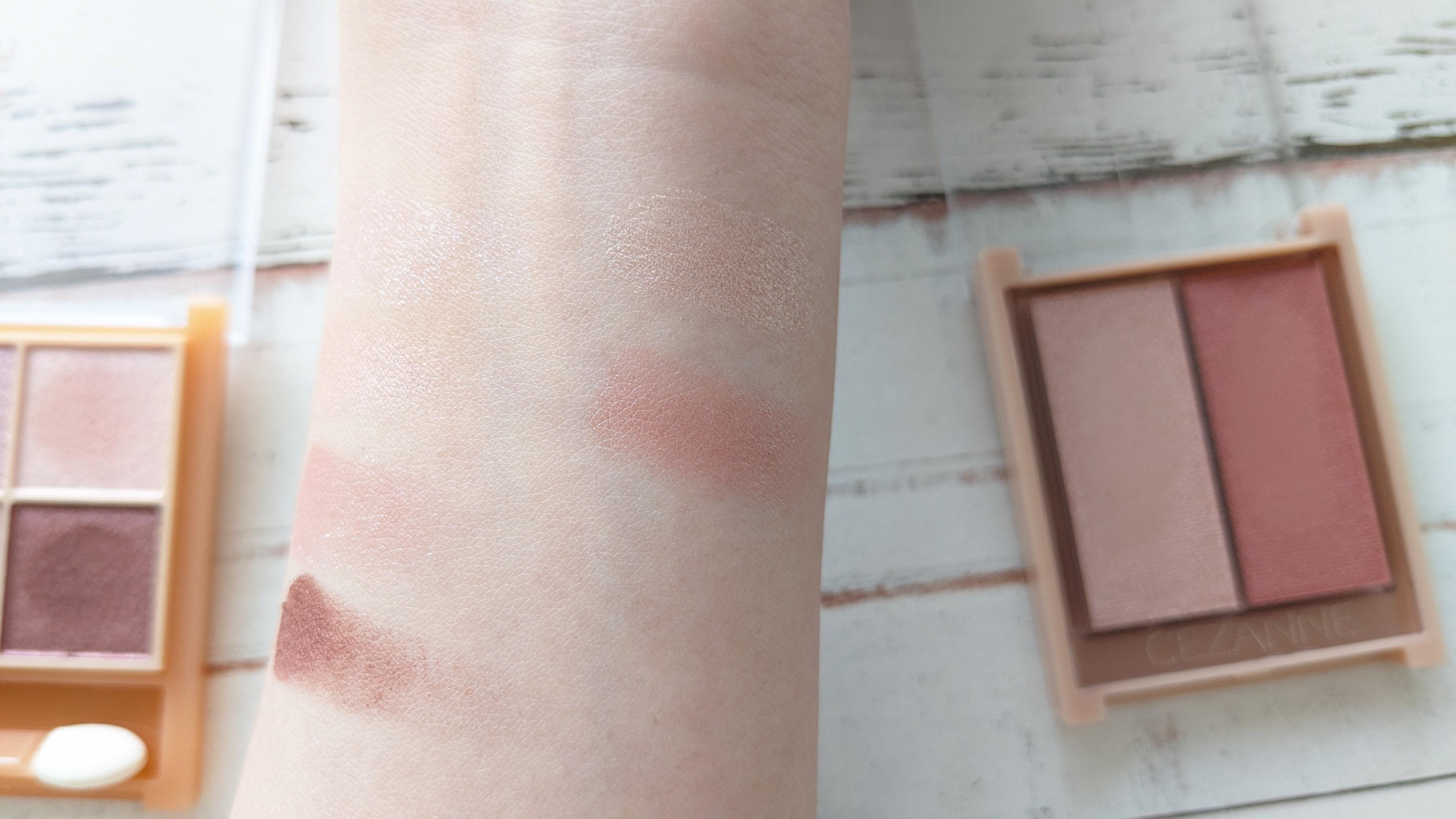 右のカラーを指を軽く滑らせて取り、ポンポンとやさしく頬やまぶたになじませれば内側からふわっと上気したような肌に。血色カラーだから誰でも使いやすく、セザンヌの店頭POPに「全国民ローズ」とあったのも納得です。
