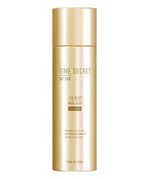 美容液うまれのメイクくずれ防止ミスト。「タイムシークレット フィックスミスト コラーゲン」(60g)¥1,760(税込み)