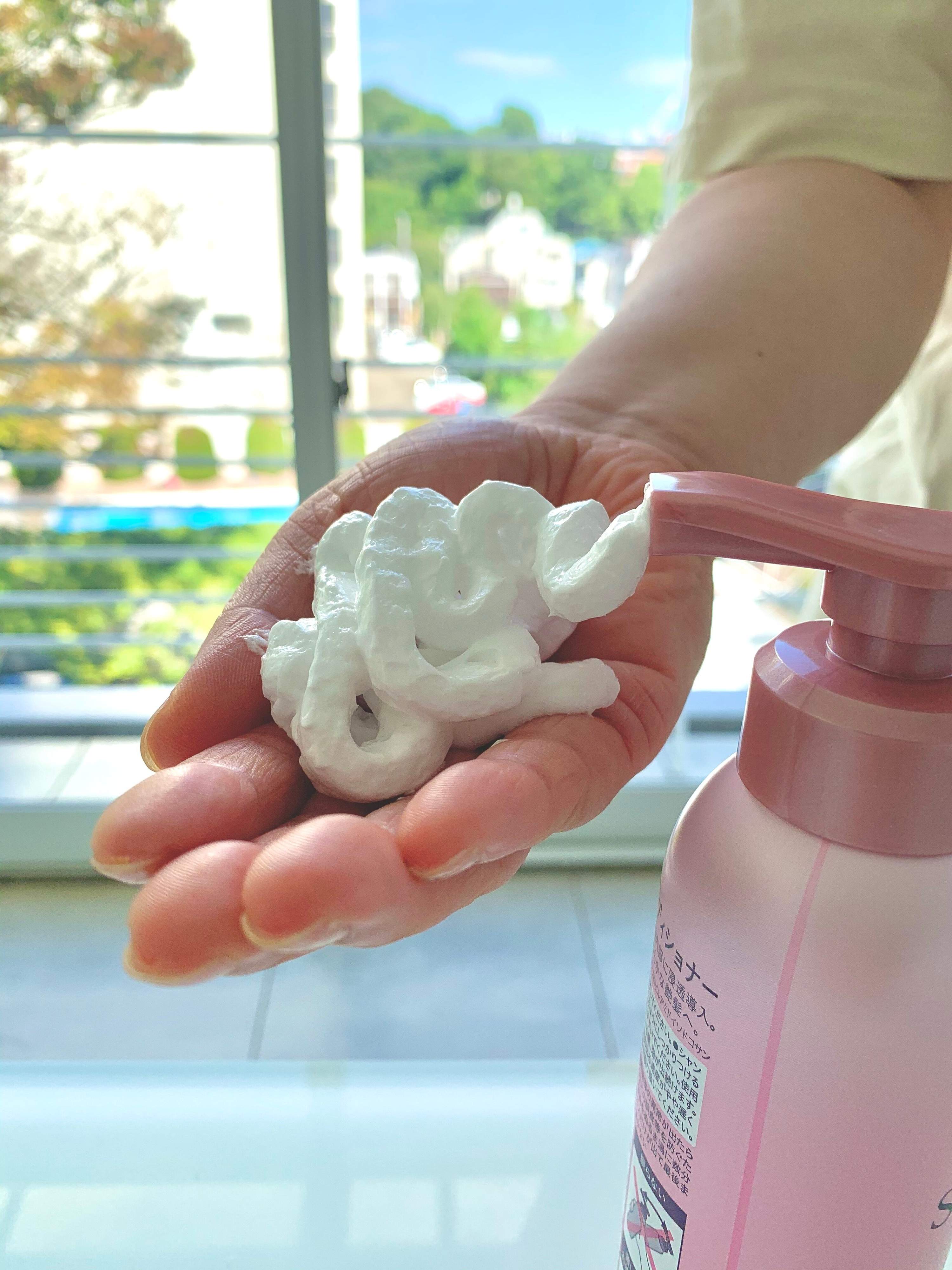 私の個人的な感想をお伝えすると…このシャンプー、洗っている最中から「あら? 髪の毛がしっとり柔らかになっている??」と実感できました。私の髪はブリーチでけっこう傷んでいて、日々のシャンプー時にゴワついてからまるような感じがあったのですが、するんと柔らかに解きほぐされるよう。ヘアケア効果をかなり感じます。