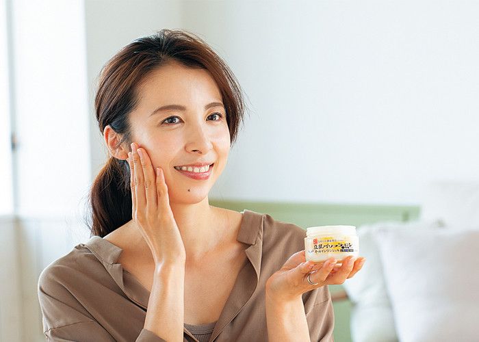 リニューアルした濃厚テクスチャーのオールインワンジェルクリーム『なめらか本舗 リンクルジェルクリームN』を試した中島さん。3人のお子さんがいて、ゆっくりスキンケアできない毎日ということですが、「なにより“これ1つでOK”なのがうれしいです。時短になるうえ、しっかりうるおって感動しました♪」と、忙しい毎日でも使いやすい手軽さ&使い心地に大満足。