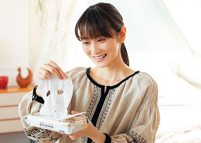 「厚めのふんわりシートに濃密ジェルがたっぷり含まれたマスクが肌にしっかり密着。動いても落ちないから、家事をしながら使えるのがいいです!」と家事とあわせた、ながらケア ができる点を高評価。