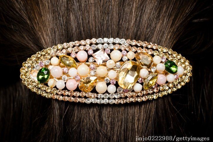 髪飾りは、髪を束ねるアイテムとしてバレッタがおすすめ。派手過ぎず、上品なものを選びましょう。ヘアピンやコームは、アップスタイルに使えます。素材はパールやラインストーン・ビジュなど。