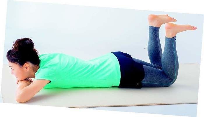 ①うつぶせになり、手は顔の下に。足は腰幅に開いて90度に曲げ、足の裏は天井に向ける。②左足を床から浮かせるように上げて3秒キープ。左足をおろし、右足も同様に3秒上げる。左右それぞれ10回繰り返す。