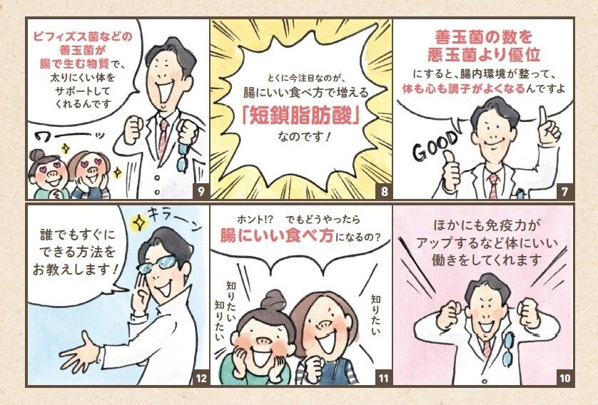 腸の超働き者である「短鎖脂肪酸」を効果的に増やすために、取り入れやすい食べ方を小林先生が伝授。どれも難しいことではないので、1つでも多く取り入れて!