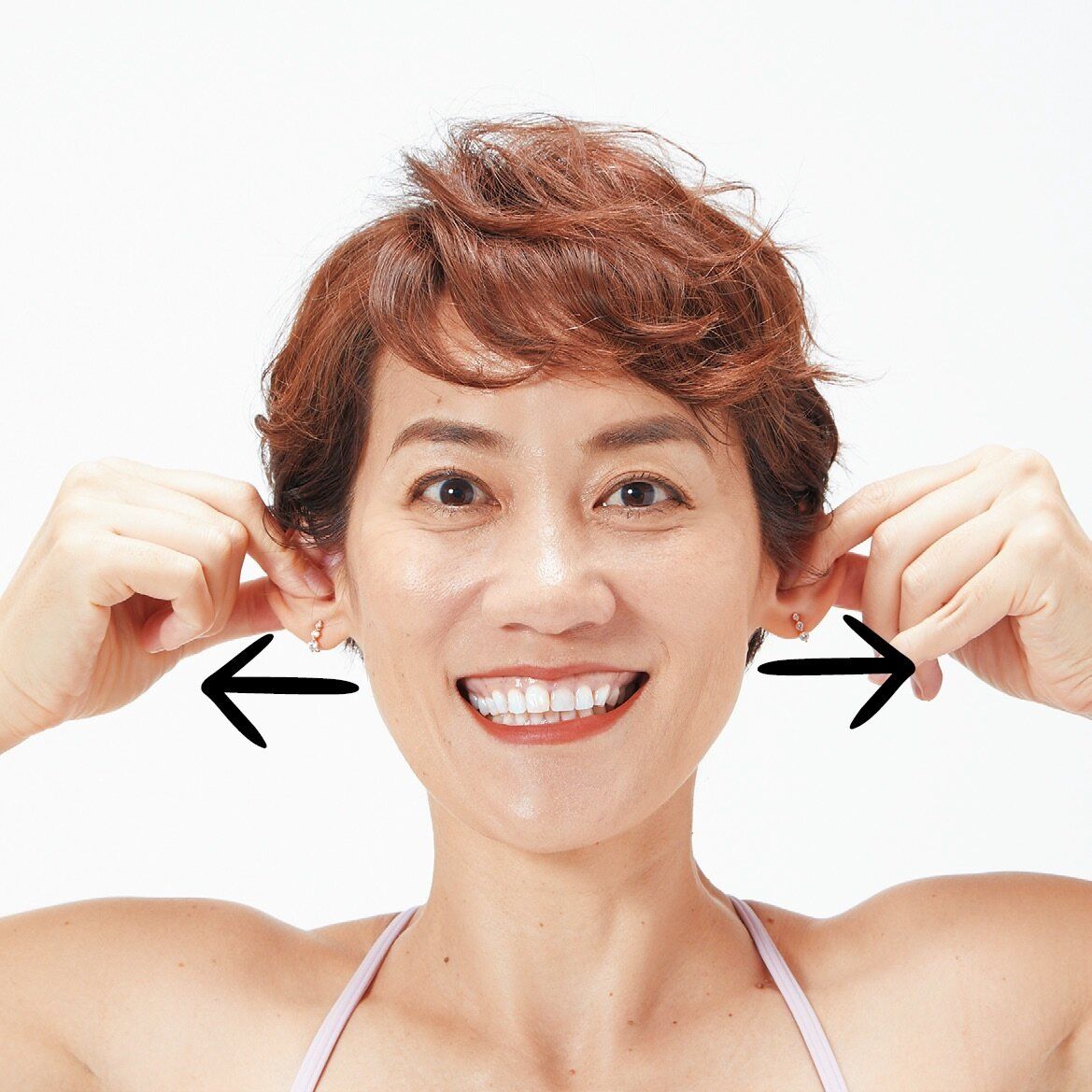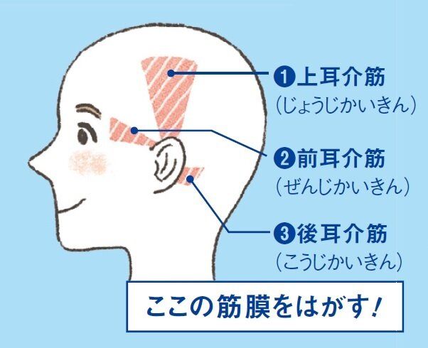 マスク生活で耳周りの筋膜が固まって顔の筋肉の動きが悪くなり、これがたるみの原因に。耳”つまぷる”で筋膜をはがせば顔全体がリフトアップ。