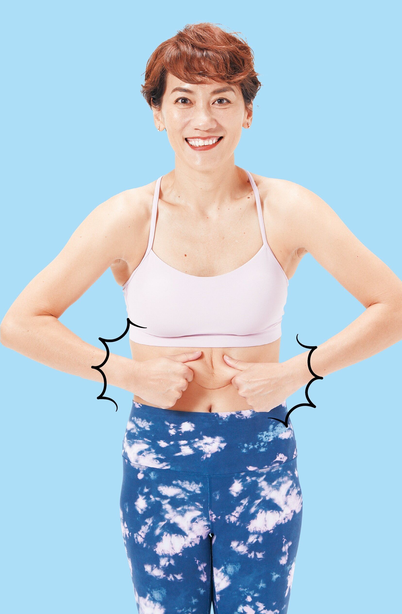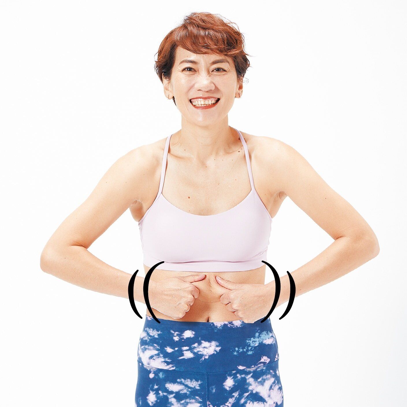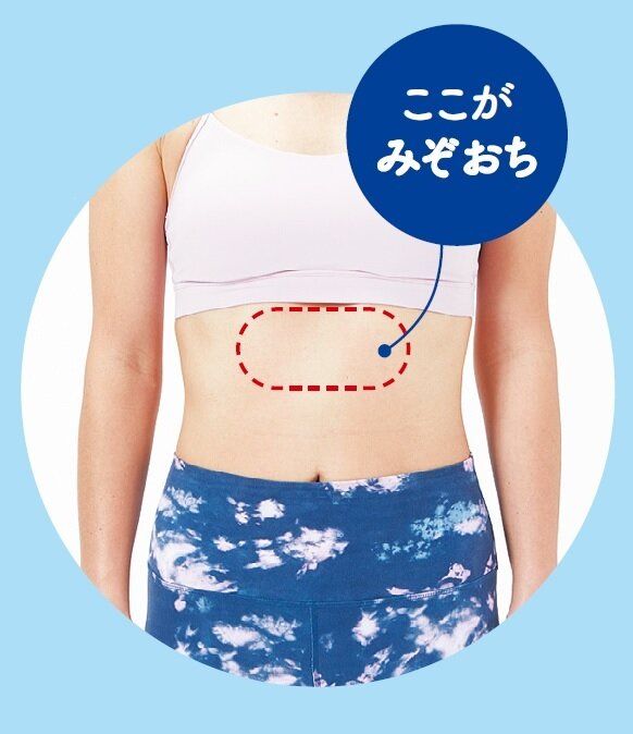 みぞおちは、お腹の上の真ん中のくぼんだ部分。肋骨のきわから肉を集めてつまみ、ぷるぷる揺らして。