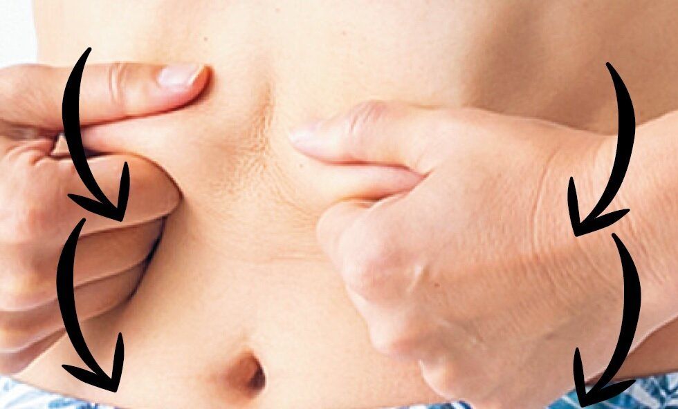 みぞおちの筋膜が硬く縮んでいるとぽっこりお腹の原因に。”つまぷる”ではがせば凹む!
