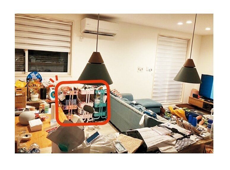 収納棚からあふれた物は可動式のワゴンにひとまとめっ!でも実はそのワゴンが元凶で部屋の景色も持ち物の稼働率も悪くなっているんです。