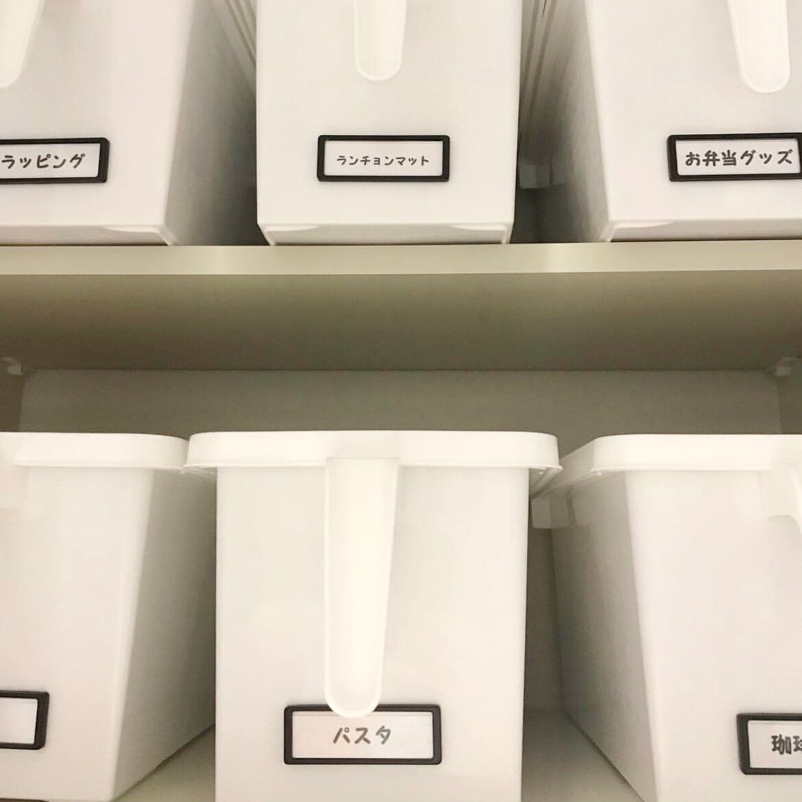 目につかない場所や物を詰め込んでしまうと、気づくと賞味期限が切れてしまっていた、なんて事もありがちです。またストック量が分からないとつい同じ物を買ってしまったりもしてしまいます。そんな時は収納ケースに入るだけ、と適量を決め、ケースにラベルを貼ることで管理でき、取り出しやすくもなります。