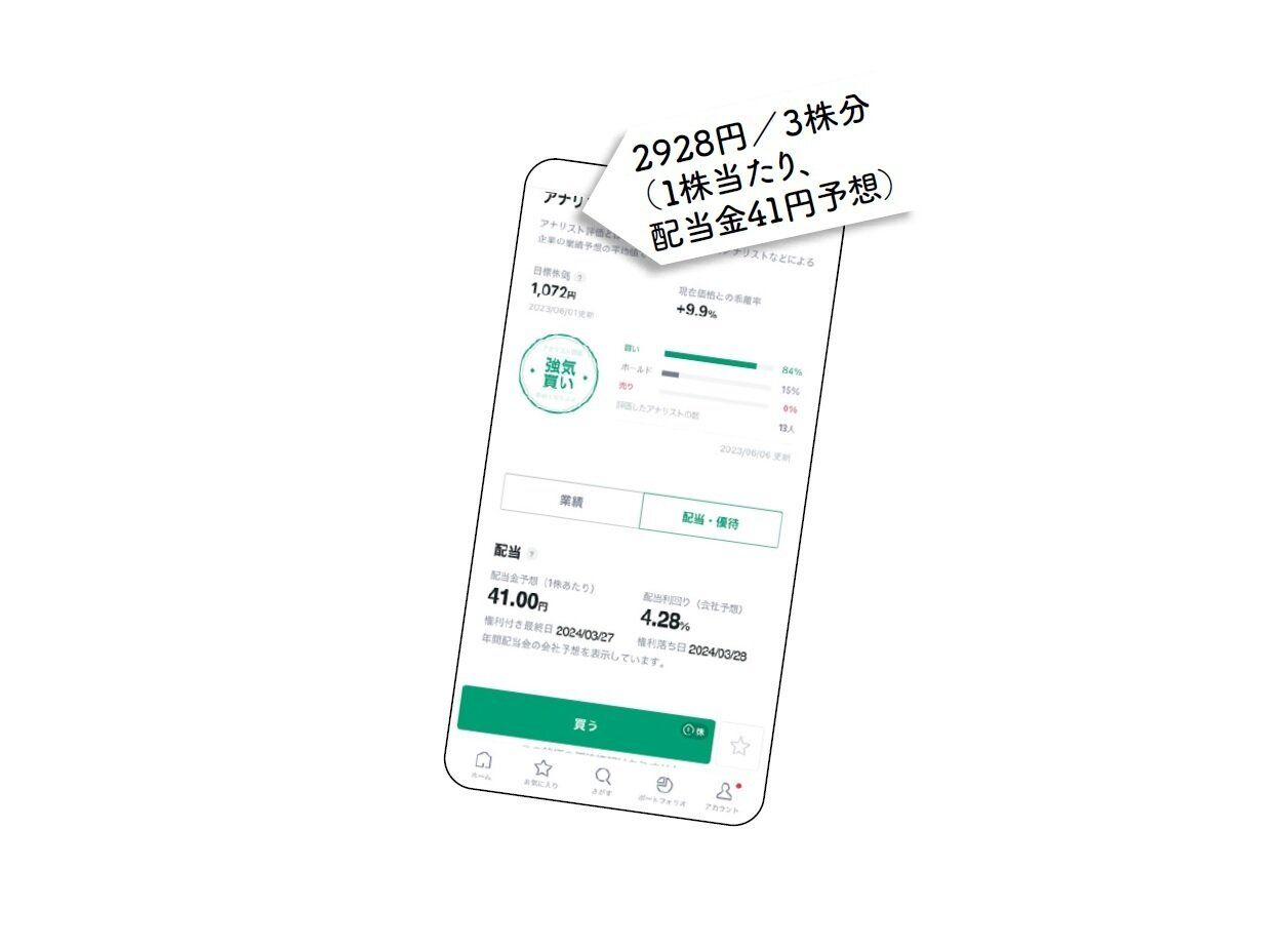 今は欲しい物がなかったので、LINE証券で「株」を購入。検索ページの「3000円以下で買える株」の中から、企業の知名度、配当利回りを見ながら決めました。