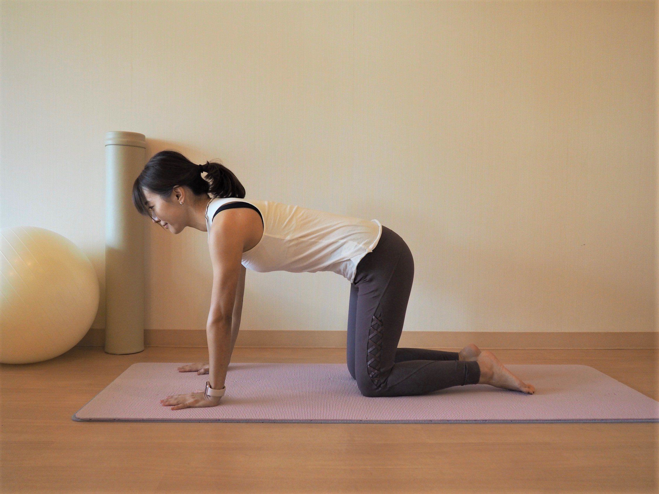 ※ 手は肩幅、足は腰幅に開き、肩の下に手首、股関節の下にひざをつく