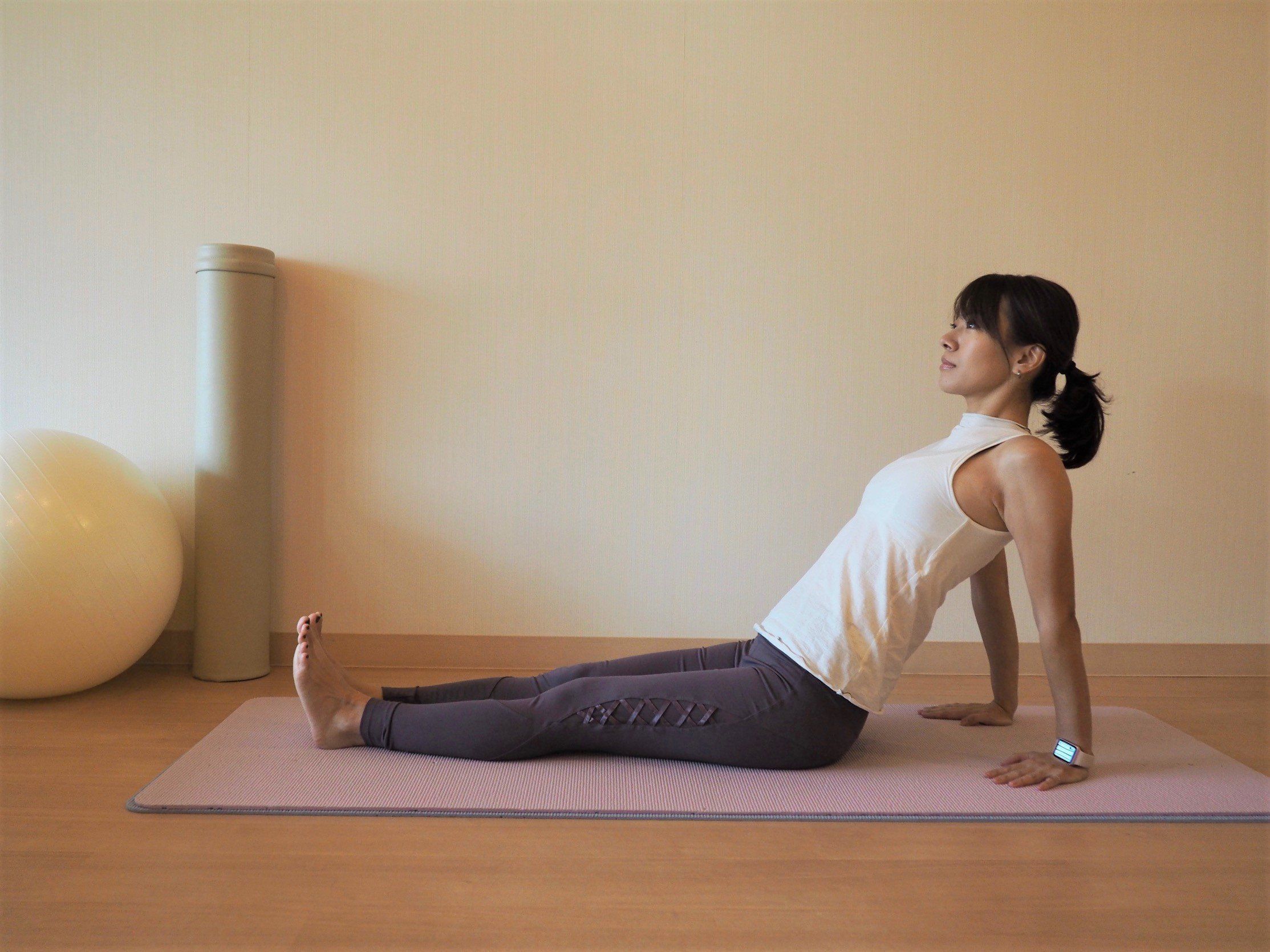 (1)足を伸ばして座り、両手は体のうしろにつく