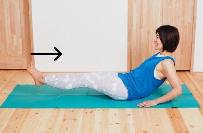 「おしり筋伸ばし法」は、足のつけ根とおしり下の筋肉を伸ばしてほぐし、ゆがんだ骨盤を整えて、下半身に脂肪がつくのを防ぎます。