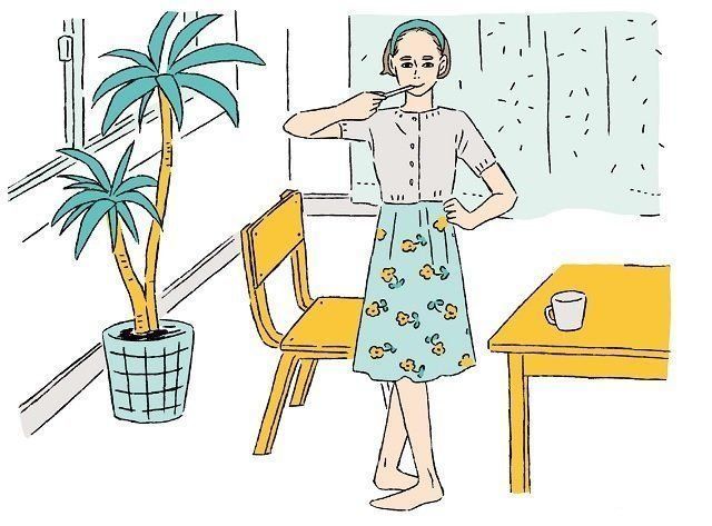 お皿洗いをしながら、ドライヤーで髪を乾かしながらなど、生活習慣に取り入れやすい内容となっています。おなかに力を入れながら、姿勢を正して行うのがこのエクササイズのポイントです。