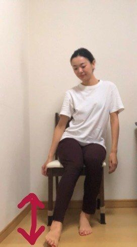 次に紹介するのは椅子に座った状態で行う骨盤エクササイズです。キャスターのついていない椅子を使い、靴下を履いた状態で行うとよいでしょう。