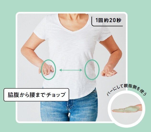 お腹にたまった脂肪は、柔らかくしないと出ていってくれません。たたくと脂肪と同時に皮膚まで柔らかくなってマシュマロ肌に。