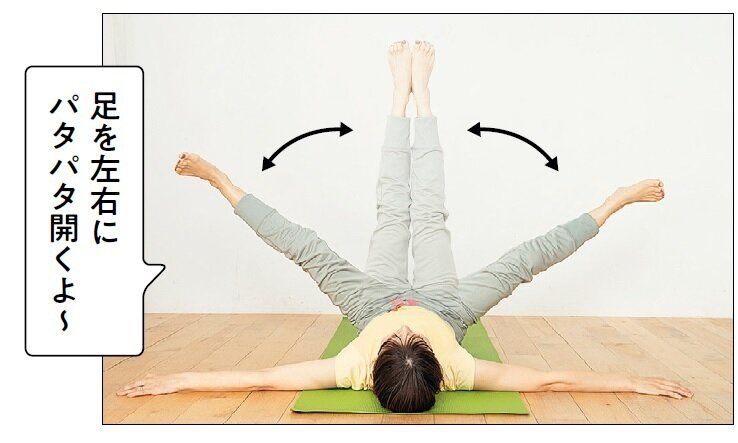 パターン1 足を上に伸ばしたまま左右に大きく開閉する。