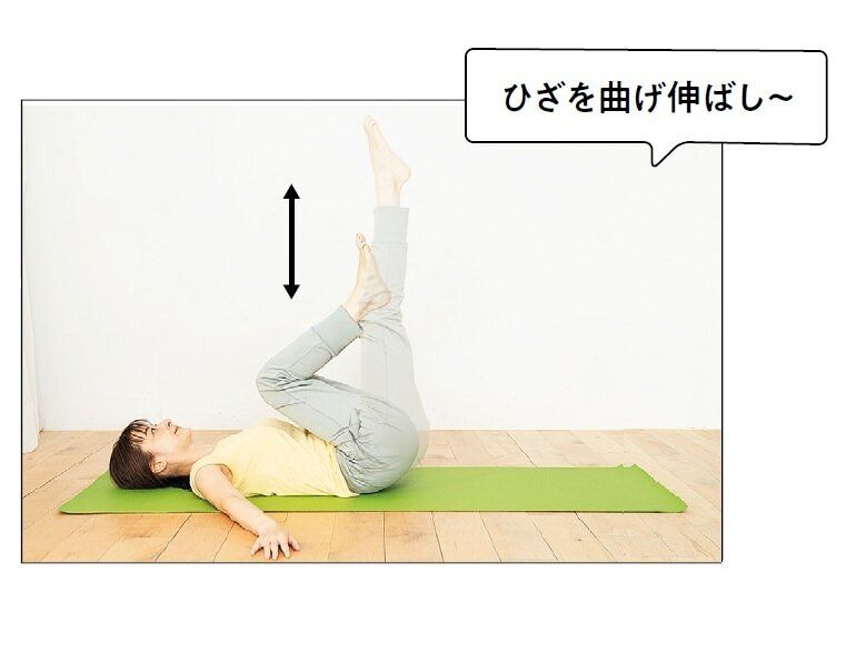 パターン2 足をそろえて、ひざを胸に引き寄せる、伸ばすを繰り返す。
