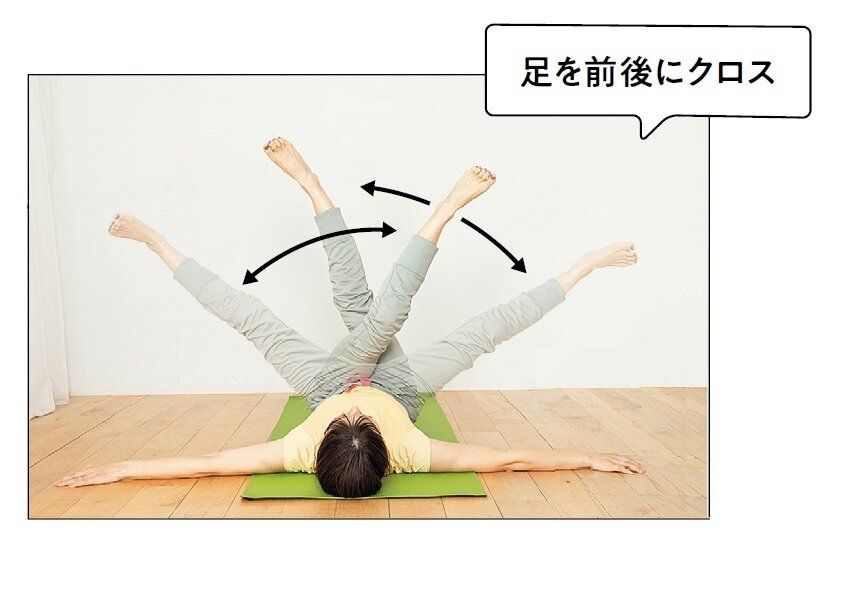 パターン4 左右の足を中央でクロス。前後の足を入れ替えて、さらにクロスする。