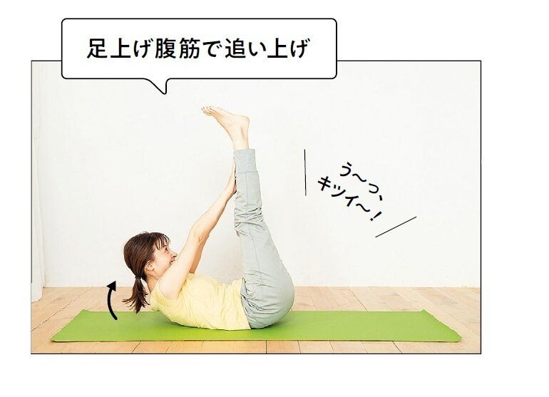 パターン6 両手を伸ばして上体を起こし、手ですねをタッチして戻る。