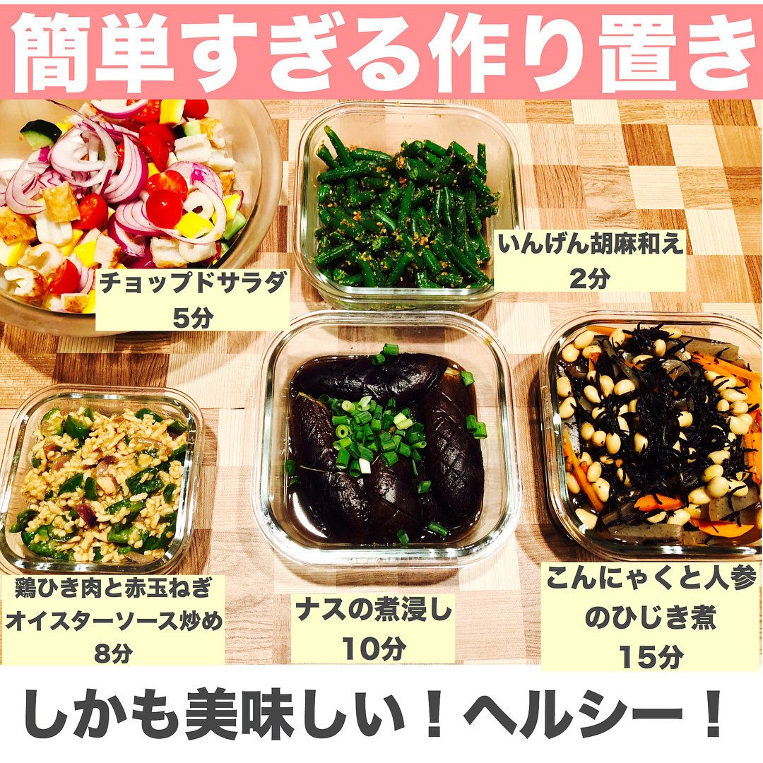 eri__fitnessさんは、外食やコンビニ弁当を買うのを防ぐために作り置きをしています。ポイントは、夕食のときにチョップドサラダや、チキンナゲット、炒めものなどを多めに作り、作り置きに回すこと。わざわざ作り置きのためだけに料理をする必要がないので、忙しい方でも簡単に準備をすることができますね。
