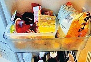 冷蔵室のドアポケットがお菓子専用BOXに。チョコやパイなどのミニサイズのお菓子をストック。