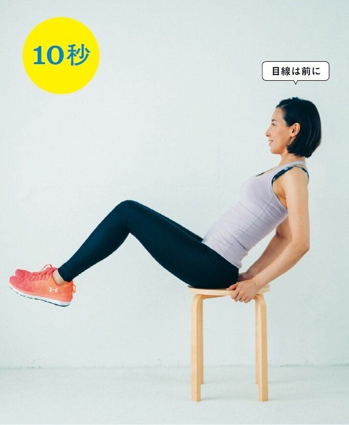 基本の10秒ストレッチで体がほぐれたら、「鍛える系」のストレッチの効果がさらにアップ!腹部全体を覆っている腹横筋を鍛えて、気になる下腹部のたるみを解消しましょう。下腹ペタンコをめざして挑戦してみて。