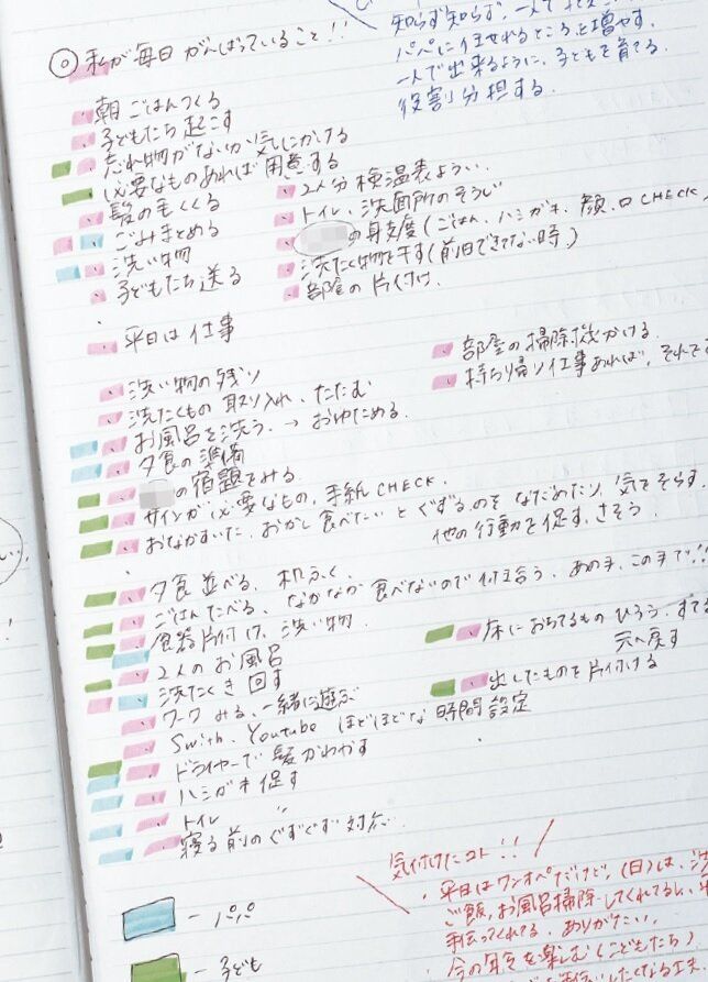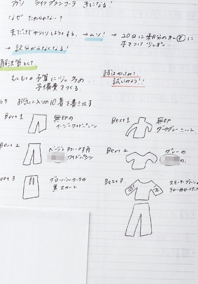 整理収納アドバイザー・Emiさんの『マイノートのつくりかた』を実践。「好きなことや欲しい物など何でも書き出すことで、頭の中が整理でき、自己肯定感が上がって、何事にも前向きに!」。