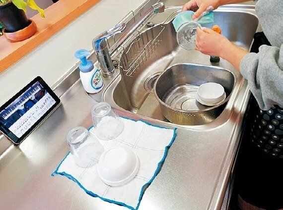家事のなかでも特に嫌いなのが食器洗い。「好きな曲をスマホで流し、歌いながら食器洗いをすれば、自然と笑顔に。笑うと健康にもいいし、シワ予防にもなります」。