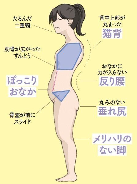 これがデブ姿勢だ!!太りやすくて、やせにくい反り腰&猫背