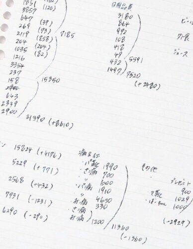 家計簿は、日付や店名は省き、費目ごとに使った金額を書くだけ。見やすいから、夫と共有するのもラクです。