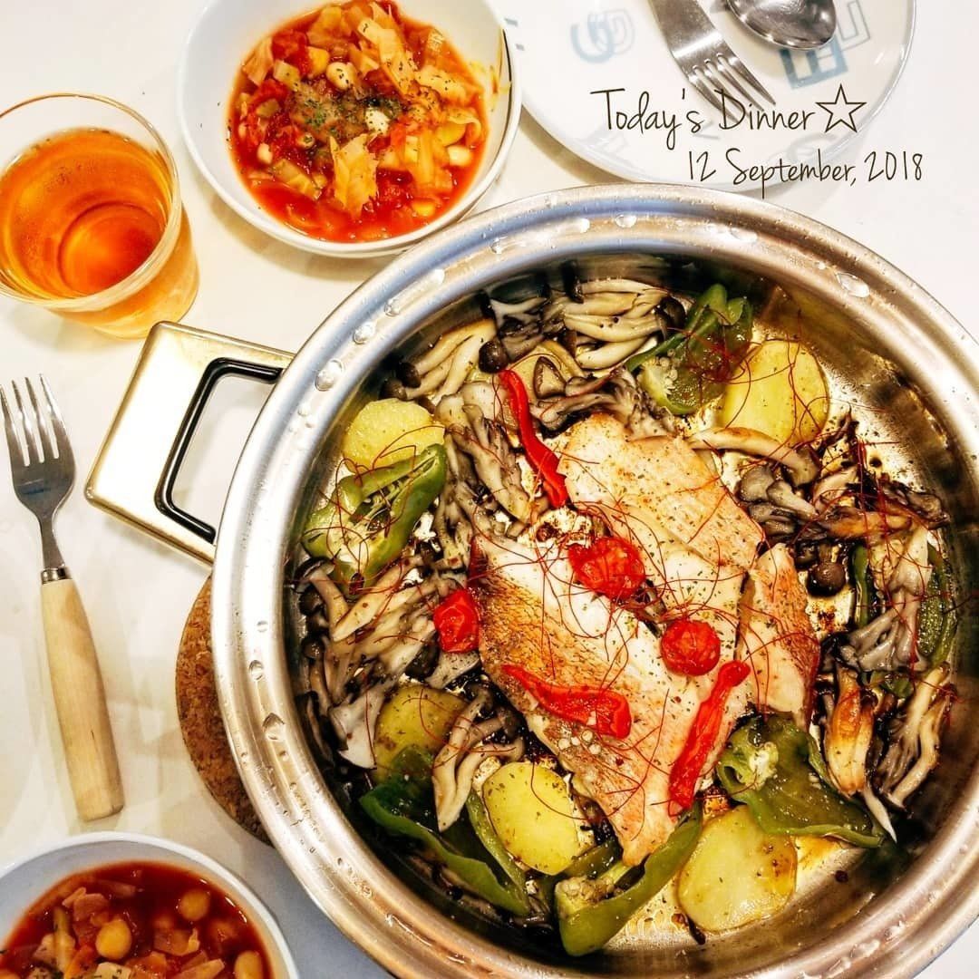 ダイエットを始めて2カ月頃のある日の夕食メニューは、野菜たっぷりのアクアパッツァやミネストローネ。1日の総摂取カロリーは1704kcal、消費カロリーは404kcalでした。このようにヘルシーな食事と運動を続けた結果、体重や体脂肪にはほぼ変化がありませんでしたが、以前より体力や柔軟性がアップして汗も出やすくなりました。