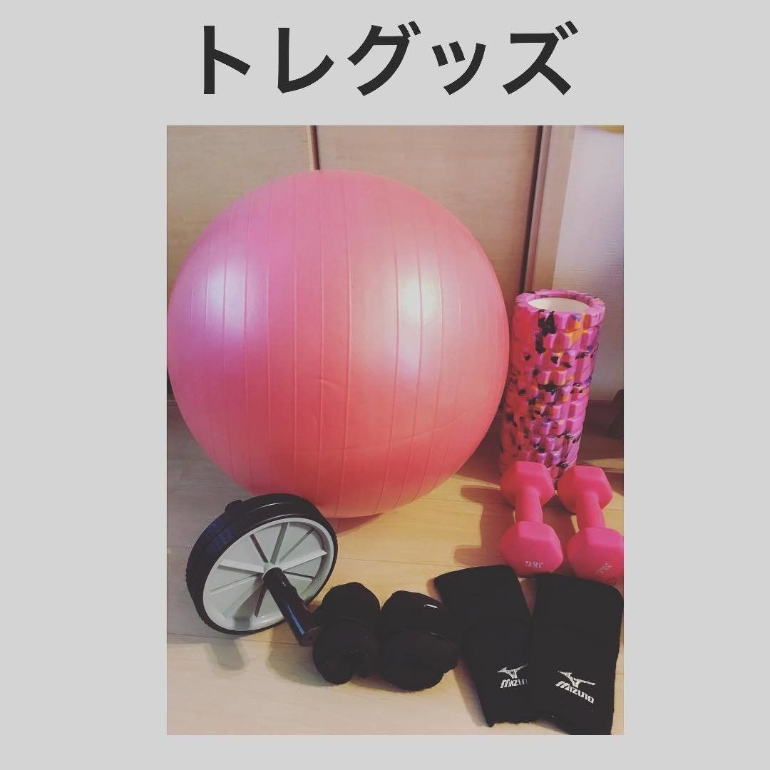 自宅でのトレーニングを中心にダイエットしているmamidiet3さん。おうちには、ダイエットを助けるアイテムであるフォームローラ、3kgのダンベル、1kgのウェイト、サポーター、バランスボールなどのグッズを集めています。お気に入りのピンクカラーでそろえることが、モチベーションを高める秘訣なのかもしれません。