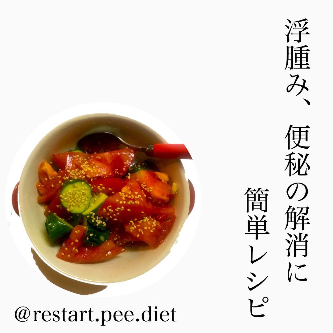 仕事のある日は自炊の時間がなかなかとれないため、生で手軽に食べられて栄養があり、消化のいいものをとるように心がけています。中でもよく食べているのが、ざく切りにしたトマトときゅうりをごま油と麺つゆで和えるだけの簡単レシピ。たくさん食べることで、浮腫みにくく、便秘もあまり感じなくなったそうですよ。