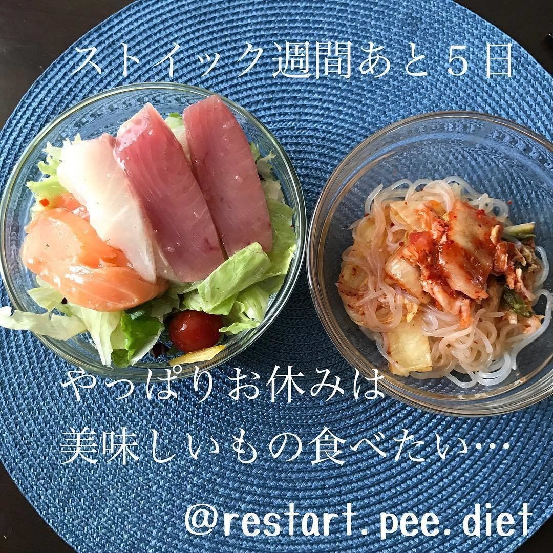 初めは糖質制限をおこなったrestart.pee.dietさんでしたが、忙しいWワーク生活には合わず断念。自分のライフスタイルにあわせ、「お子さまプレートに盛って量を減らす」「7000kalを目安に一週間単位で調整する」「朝ごはんはお通じを意識してヨーグルトやおからクッキーを食べる」などの方法に落ち着いたのだとか。