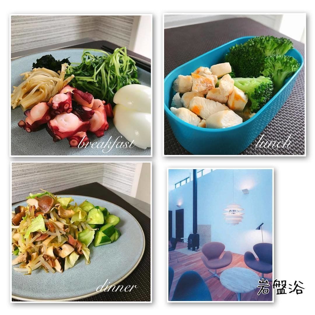 主な食事内容は、タンパク質中心の糖質制限メニュー。この日も朝ごはんにサバと目玉焼き、昼ごはんにはコンビニのささみスモーク、夜にはラム肉と、3食しっかりタンパク質をとっています。合わせてアボカドやブロッコリー、ほうれん草やきゅうりなど、野菜もバランスよく食べているようです。