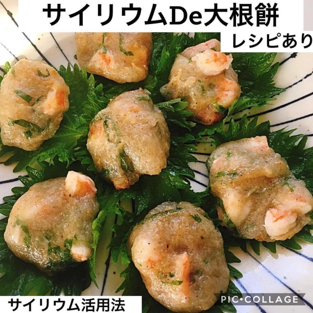 片栗粉の代わりとして、オオバコという植物を粉末にした「サイリウム」も取り入れています。こちらの「大根餅」は、大根おろしと冷凍エビ、シソ、鶏ガラスープの素、サイリウムを混ぜてフライパンで焼いたもの。サイリウムはそのほか、とろみづけやわらび餅などのスイーツづくりにも活用できるようです。