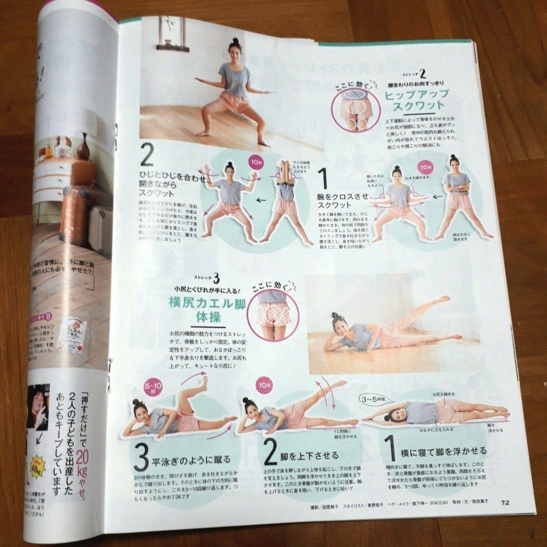 ダイエットでは減量だけでなく、ストレッチなどで姿勢や体質を改善するのも重要です。acoさんは、後ろで手を組んで肩をひらく「猫背改善ストレッチ」と、お腹をへこませながら呼吸をする「二の腕と腸のストレッチ」を実践。背中やお腹を刺激することで、猫背や便秘の改善、バストアップも期待できるそう。