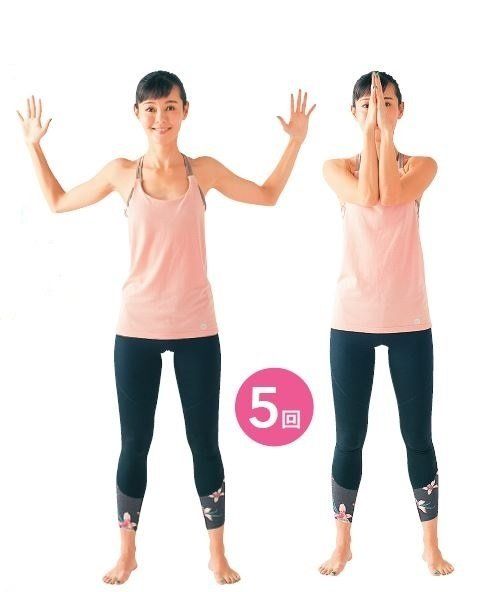 【2】手のひらとひじを合わせ、とじたり開いたり