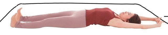 起き上がるその前に! 息を吸いながら、両手を頭のほうへスライドし、手足をグーッと伸ばす。手は伸ばしたままでも組んでもOK。息を吐きながら、両手を体の横に戻すだけ。