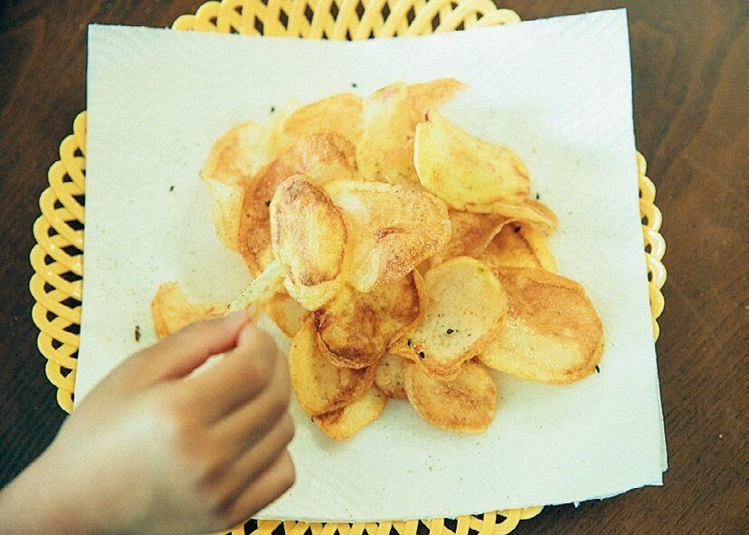 子どもにお菓子ばかり食べさせると予算や健康の管理が必要だから、野菜をおやつ代わりに。「自家製ポテトチップスは定番。夏はトマトやきゅうりを丸かじり、秋はさつまいもやかぼちゃを天ぷらにします」。