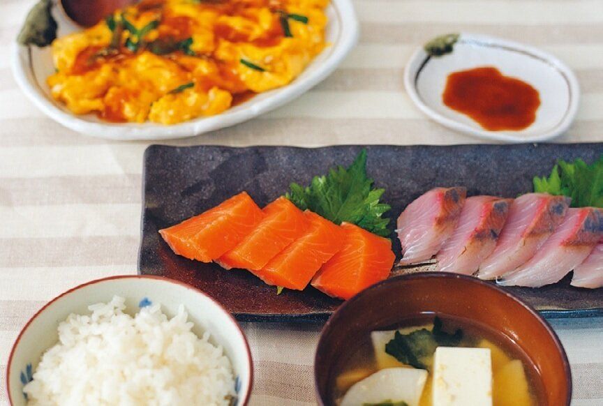 週末は家族で居酒屋に行っていたのを、刺し身を買って家で食べることに。「近所の安い鮮魚店で新鮮な刺し身を買ってきます。低脂肪高たんぱくで良質の油がとれて、居酒屋より安上がり」。