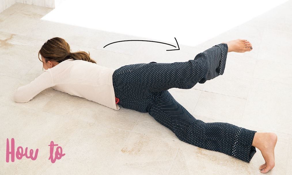 下腹肉を撃退するには、脚のつけ根を伸ばし、おなかと骨盤をつなぐ筋肉(大腰筋)を鍛えること。「おなかを支える筋肉が伸びると、骨盤のゆがみが直り、下がった内臓も正しい位置に。わき腹の筋肉も伸び、腰まわりもスッキリ」