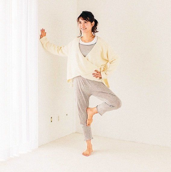 「足の筋肉を鍛えて、下半身の冷えを改善するには〝1分フラミンゴ立ち〞が効果抜群。1分ずつ片足立ちをするだけで、ウォーキング50分と同じ運動効果が!手を壁につけて行ってもOK」