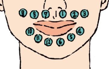 (1)口のまわりを10カ所前後刺激