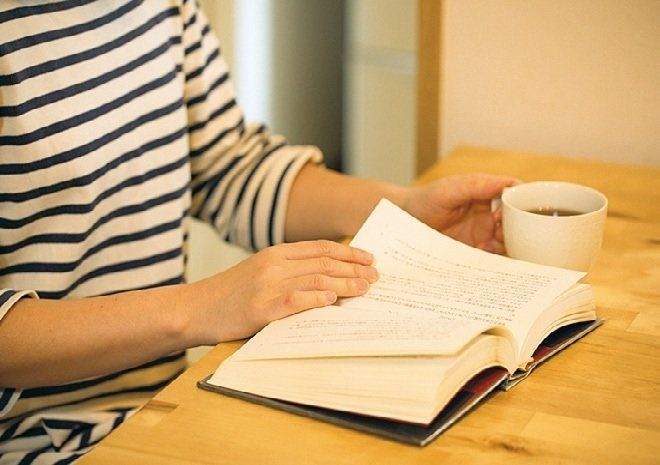 子どもが寝たあとは、大好きな読書で自分タイム♪「ゆったりした気持ちで1日を締めくくることで、余計な物欲もおきません」。